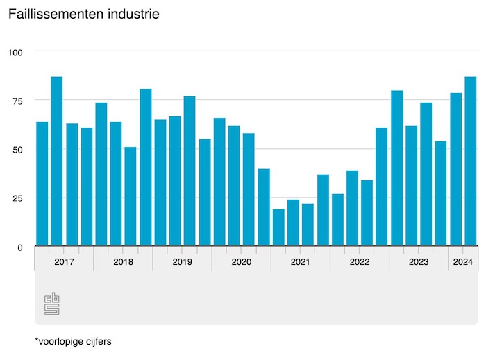 De toename van het aantal faillissementen is weliswaar aanwezig, maar wordt verklaard door het feit dat dat aantal weer normaliseert. In 2021 en 2022 werden beduidend minder faillissementen geregistreerd, veelal doordat bedrijven corona-steun ontvingen.