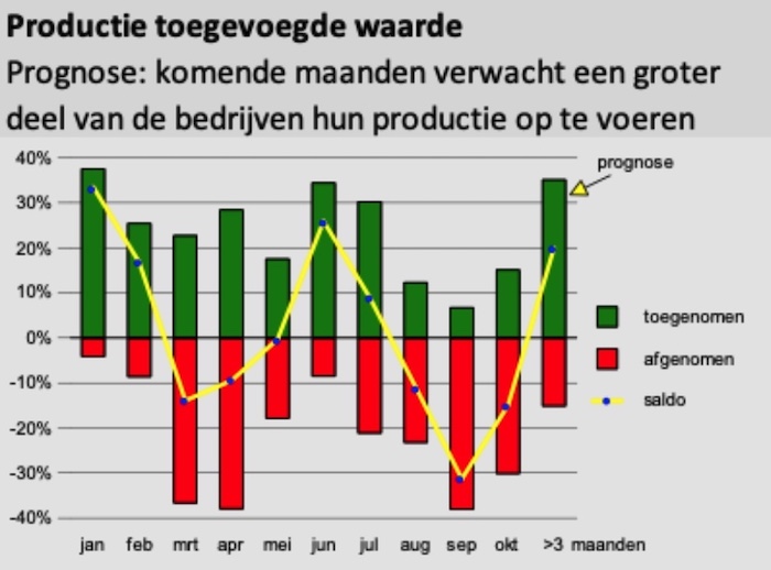 Het is vervolgens logisch dat op basis van de verwachte omzetontwikkeling, de orderontvangst en uit te besteden werk, de toegevoegde waarde dan gaat toenemen. Dat beeld schetsen de ondernemers dan ook voor de komende maanden, na een reeks maanden waarin de verwachte toegevoegde waarde juist als negatief werd bestempeld. Het zal voor het eerste. Bij een volgende analyse van de verwachtingen zal te zien of die verwachtingen in de eerste paar maanden van 2025 dan ook daadwerkelijk is uitgekomen.