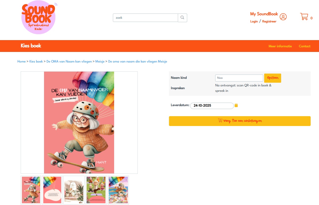 Voor het online bestelproces van de kinderboeken werkt Soundbook samen met Prindustry. “We zochten een technische partner die niet alleen levert, maar ook meedenkt en snel met oplossingen komt,” vertelt Merel. “Dat heb je nodig als je net begint – en het team van Prindustry is daar fantastisch in.”