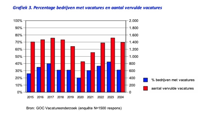 Uit het eigen GOC vacature onderzoek bleek dat in 2024 1400 vacatures bij ruim 600 bedrijven werden ingevuld, minder dan in 2023, toen de vraag weer even leek te pieken.