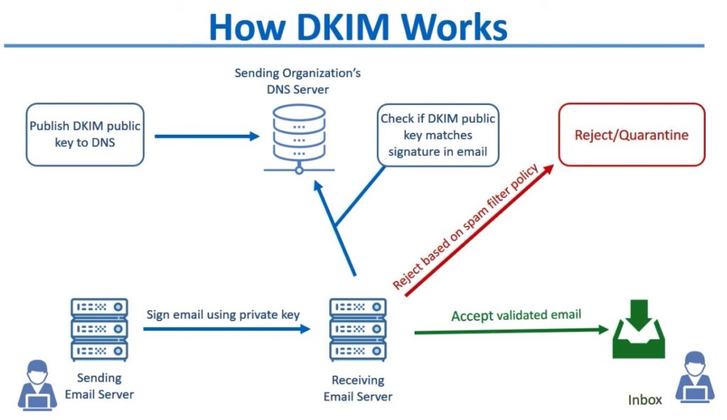 - DKIM: DomainKeys Identified Mail, werkt - simpel uitgelegd - als de digitale handtekening van je e-mail.