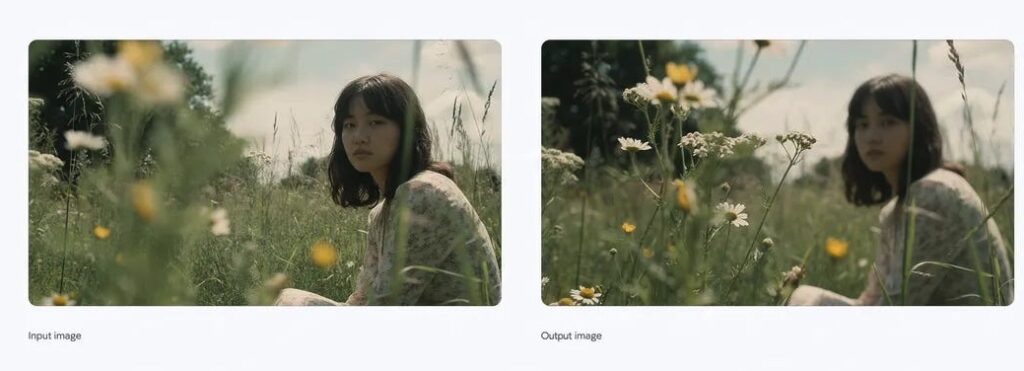 AI Report liet een duidelijke foto zien waarin aan Nano Banana Pro werd gevraag om de bloemen in de linker onderstaande foto 'scherp' te maken en het gezicht 'onscherp'.