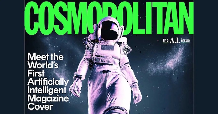 De cover van Cosmopolitan (VS) van juni 2022, ontworpen met behulp van OpenAI’s beeldgenerator DALL-E 2. Het tijdschrift presenteerde dit als ’s werelds eerste magazinecover die volledig door AI is gemaakt. Het beeld – een futuristische astronaute op Mars – werd in slechts 20 seconden gegenereerd op basis van een tekstprompt, waarna vormgevers het binnen 24 uur hebben geoptimaliseerd voor druk. Dit baanbrekende experiment toonde destijds de creatieve potentie van generatieve AI in de bladenwereld.